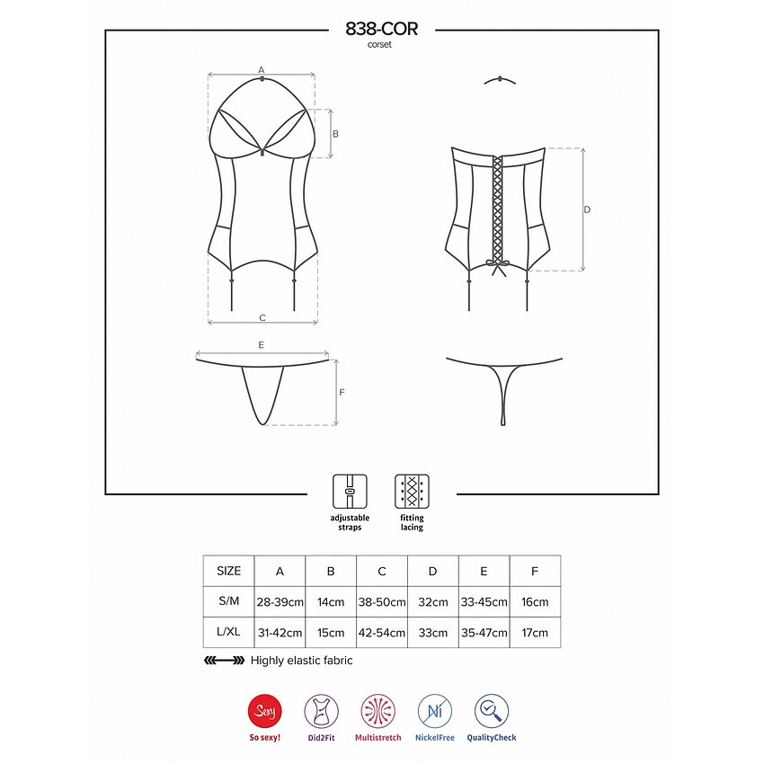 Corset Obsessive 838-COR Roșu este o piesă de lenjerie fantastică și exagerat de captivantă, gândită și concepută de prestigiosul brand de lenjerie Obsessive din Polonia.