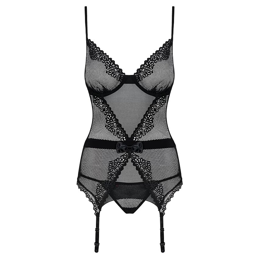 Corset Obsessive Lustella Negru este o piesă de lenjerie tulburătoare și minunat de răpitoare, inventată și confecționată de ilustrul brand de lenjerie Obsessive din Polonia.