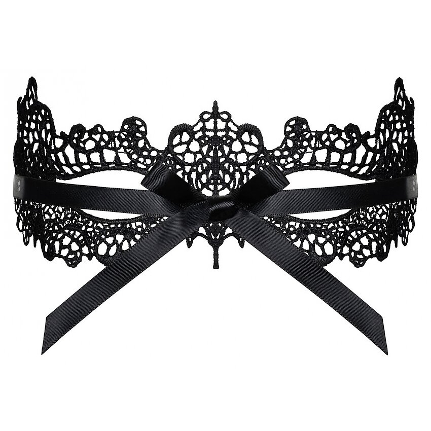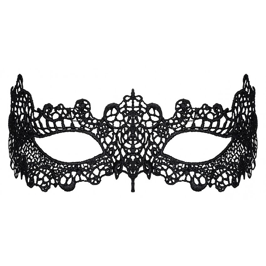 Mască Obsessive A701 Negru, simbolul senzualității și misterului. Concepută din dantelă neagră de tip guipure cu un design provocator și atractiv, această mască te va transforma într-o ispită irezistibilă. Materialul catifelat și banda satinată asigură confortul. Intră în jocul seducției!