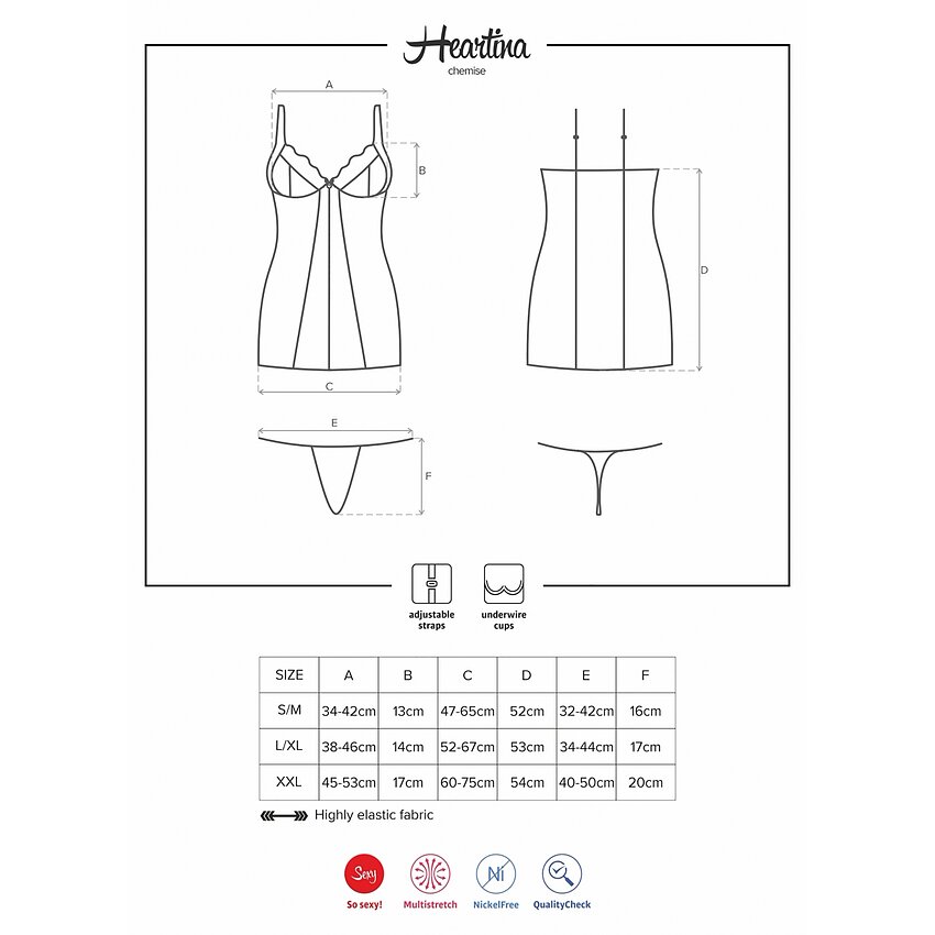 Chemise Obsessive Heartina închis la culoare este o piesă de lenjerie tulburătoare și exagerat de fascinantă, gândită și confecționată de prestigiosul brand de lenjerie Obsessive din Polonia.