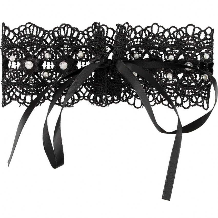 Transformă-ți look-ul cu acest accesoriu incitant! O choker neagră cu aplicații de perle și cristale, potrivită oricărei ținute. Lată de 5cm și cu o lungime de 36cm, prevăzută cu panglică de satin pentru ajustare. Materialul este 100% poliester. Achiziție îndrăzneață și seducătoare!