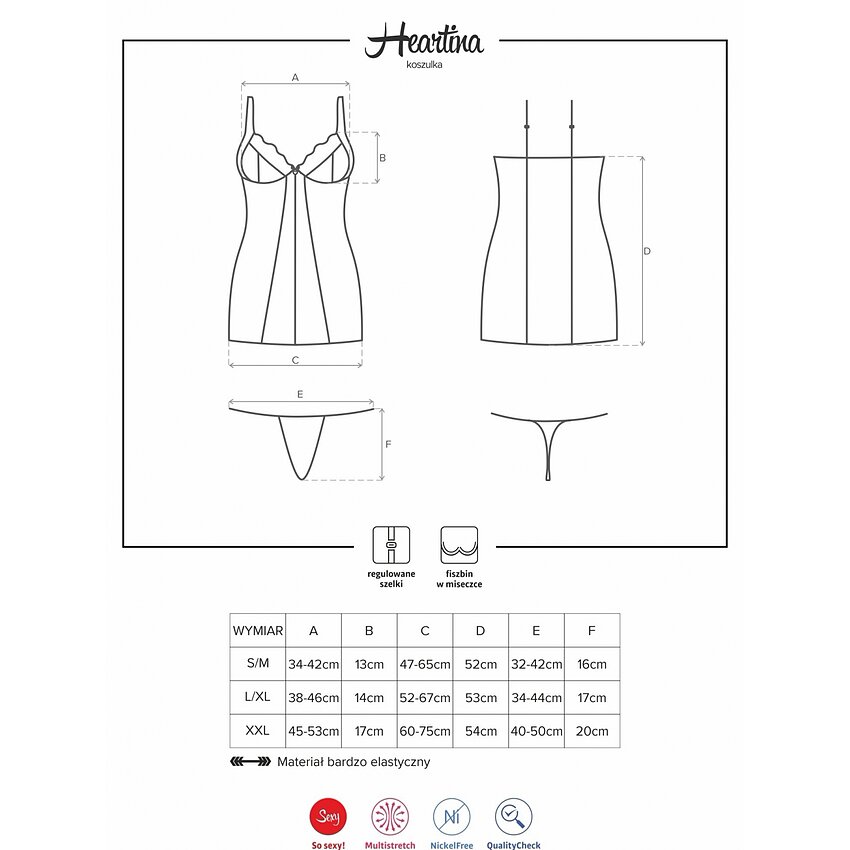 Chemise Obsessive Heartina Roșu este o piesă de lenjerie neașteptată și original de seducătoare, redată vizual și realizată de remarcabilul brand de lenjerie Obsessive din Polonia.