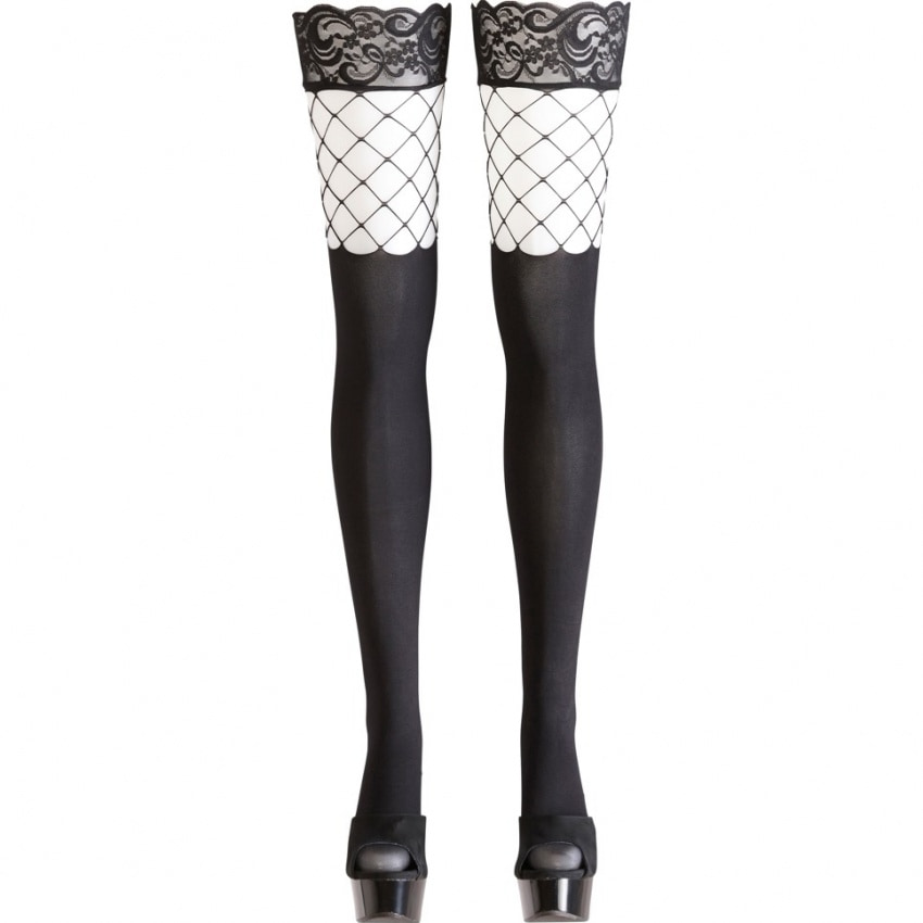 Dres opac până la genunchi și cu perforații generoase de la genunchi până la coapse. Bandă ușoară din dantelă neagră întregește până la perfecțiune acest model.