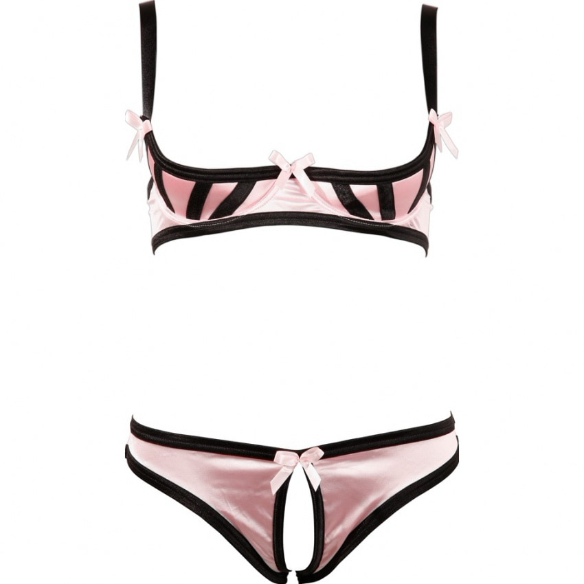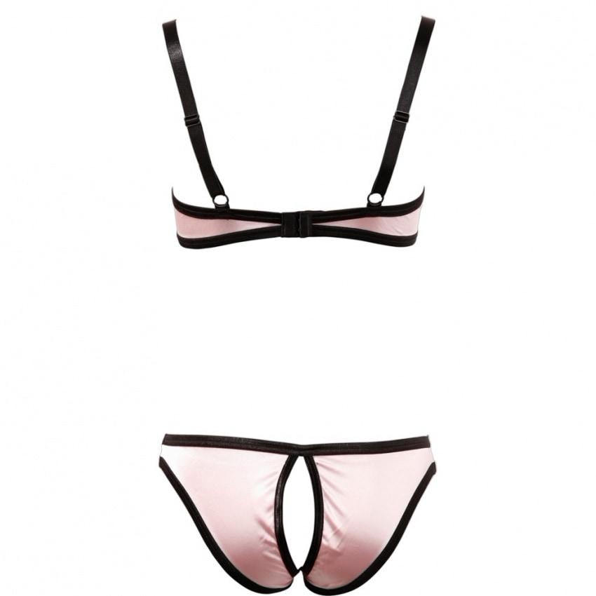 Pentru momente erotice! Set în alură de trandafir satinat cu detalii negre. Sutien cu cupe simplu căptușite și curele reglabile. Închidere în spate. Chiloții care se potrivesc sunt decupați inghinal. Stockings se pot comanda separat.