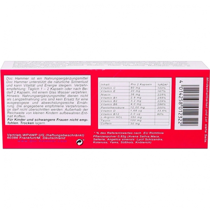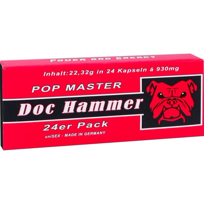 Doc Hammer Pop Master este un supliment alimentar UNISEX (pentru ambii parteneri), ce cauzează mărirea poftei carnale la prietene și o rapidă și puternică revitalizare-recuperare la bărbați. Doza recomandată este de 1-2 capsule pe zi, doza ce nu trebuie depășită. Efectul apare mai târziu min. o oră de la administrare.