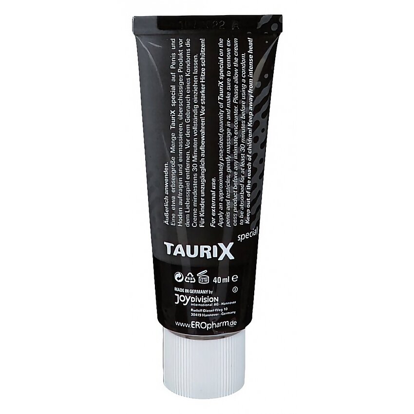 Crema Taurix Extra Strong ce are rol de a revitaliza zona genitală cu efect pozitiv în raportul sexual, asigurând o erecție mai puternică. Are la bază extras de taurină, obținut chiar din testicule de taur. Taurix este sub expresie de unguent stimulante care oferă o senzație mai plăcută în timpul actului sexual, prin dilatarea vaselor de sânge rezultând o mai bună vascularizare și în același timp sporind valoarea spermei. Atenție! Taurix se aplică în zona reproducătoare și doar mai târziu ce crema a fost absorbită se aplică prezervativul.