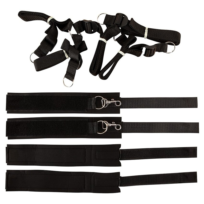 Trăiți la maxim o practică inedită cu acest kit realizat din materiale de o calitate superioară. Dispune de niște cătușe speciale atât pentru membre cât și pentru picioare pentru a amplifica și mai mult misterul în dormitor.