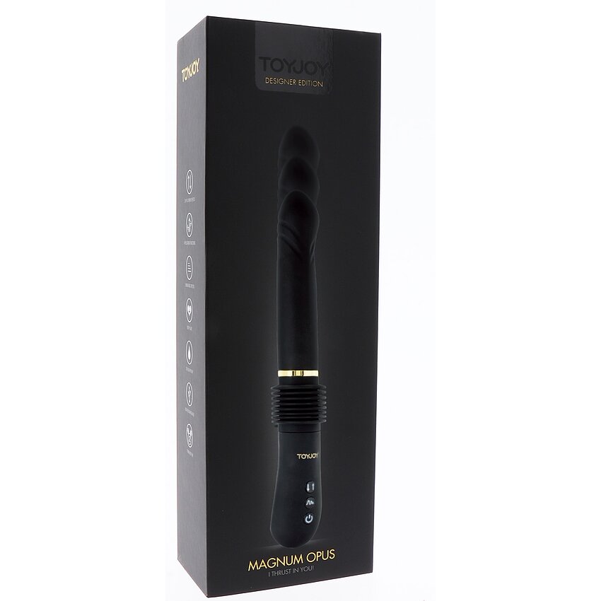 Vibratorul MAGNUM OPUS THRUSTER Designer Edition de la Toy Joy este un vibrator de silicon care nu numai că oferă vibrații, ci și o mișcare de împingere care se crește cu 8 cm.