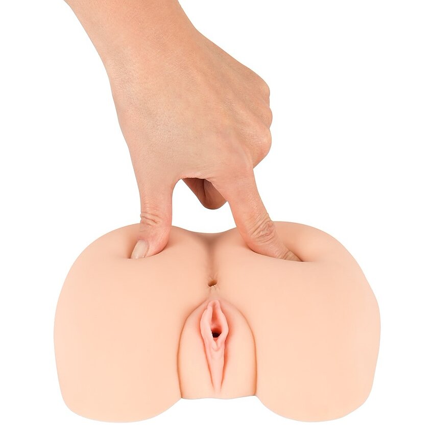 Masturbatorul Twos Company este o jucărie realistică cu anusul strâmt și moale, cu vagin și labii strânse, inodor și flexibil, pentru un confort sporit.