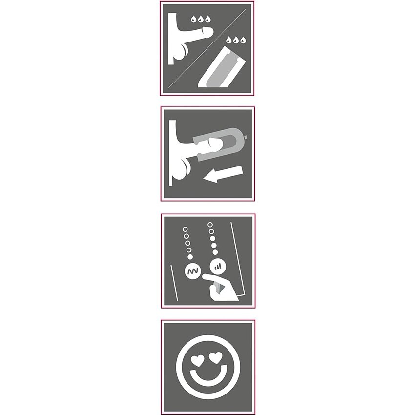 Stimularea poate fi personalizată pentru a se potrivi dumneavoastră: 5 nivele de intensitate și 5 viteze, ceea ce reprezintă o varietate de 25 de stimulări diferite. Impulsurile de sucțiune pe minut pot fi de la 42 la nivelul 1 până la 109 la nivelul 5. Forța de sucțiune crește în același timp de la 16 W la 30 W. Utilizați un lubrifiant pe bază de apă pentru a introduce penisul în manșeta moale, flexibilă. Setați apoi intensitatea, pe urmă viteza și bucurați-vă!