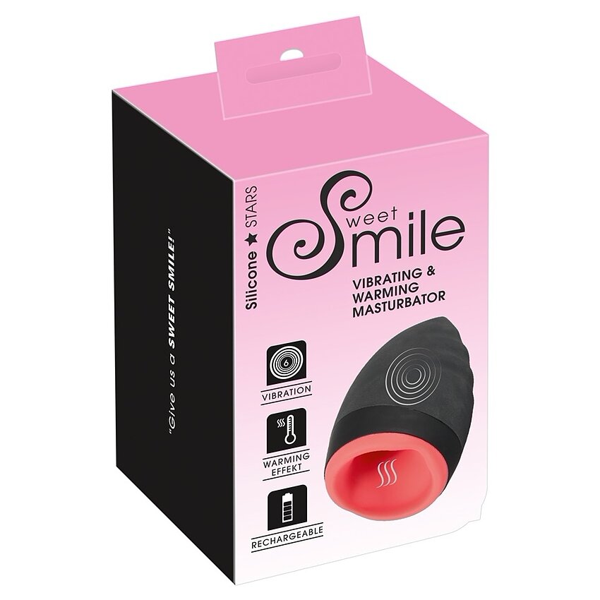 Masturbatorul Sweet Smile este făcut din silicon și are 13 cm lungime, Are funcție de încălzire care poate duce masturbatorul până la 40 grade Celsius. Are 6 feluri de vibrație și 3 viteze, deținând un total de 18 funcții de vibrație. Are formă de gură, oferind utilizatorului o practică similară cu un sex oral. Funcția de încălzire intensifică gradul de realism, provocându-ți orgasme extreme. Cu toate că are 13 cm lungime totală, mărimea inserabilă este de 7 cm, cam cât o gură normală.