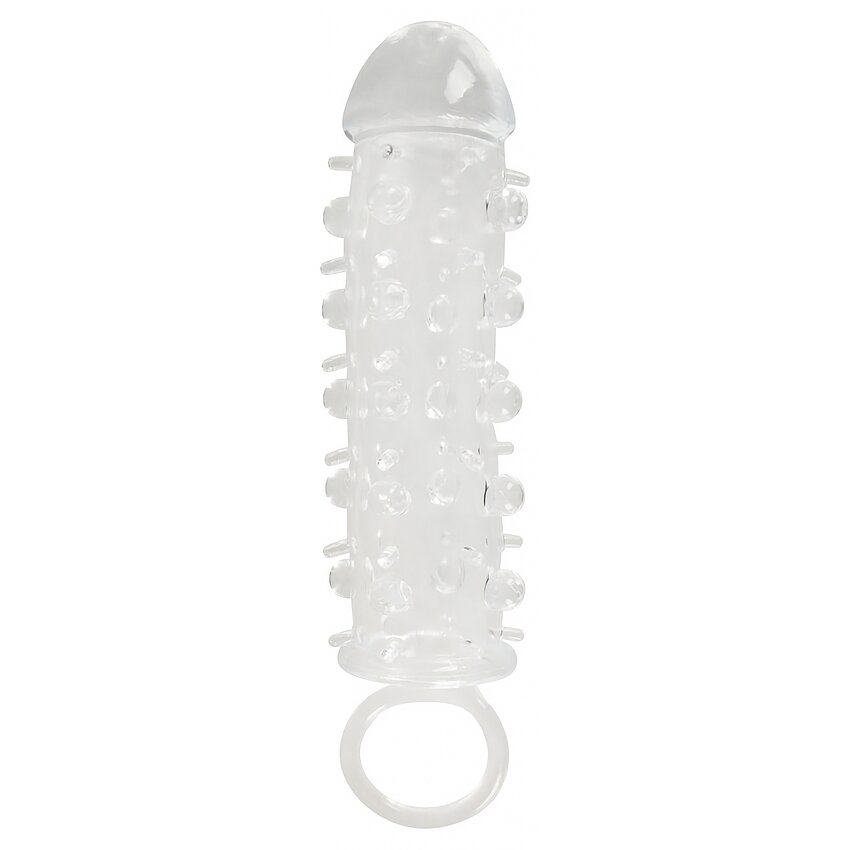 - Prelungitorul are un capăt solid care îmbogățește aproximativ 2 cm în plus la dimensiune. - Conține un inel pentru testicule, încrezând o stabilire sigură și stabilitate în momentul utilizării. - Suprafața este extra moale, cu bobițe și denivelări pentru un frecție suplimentar și stimulare intensificată. - Forma realistă a prelungitorului include un gland bine conturat pentru o practică autentică.