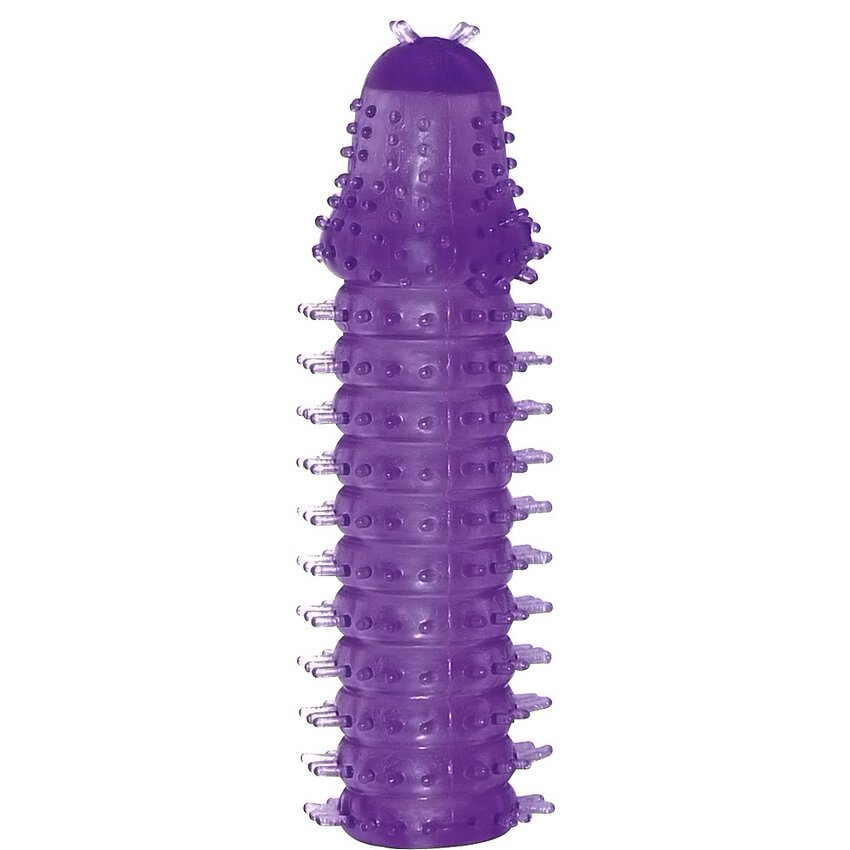 O unealtă orgiastică pentru falus și vibrator! Acest manșon neted din material gelatinos mov este extrem flexibil și se potrivește oricărui penis sau vibrator. Capul zimțat și peri moi de la ax oferă o stârnire incredibilă.