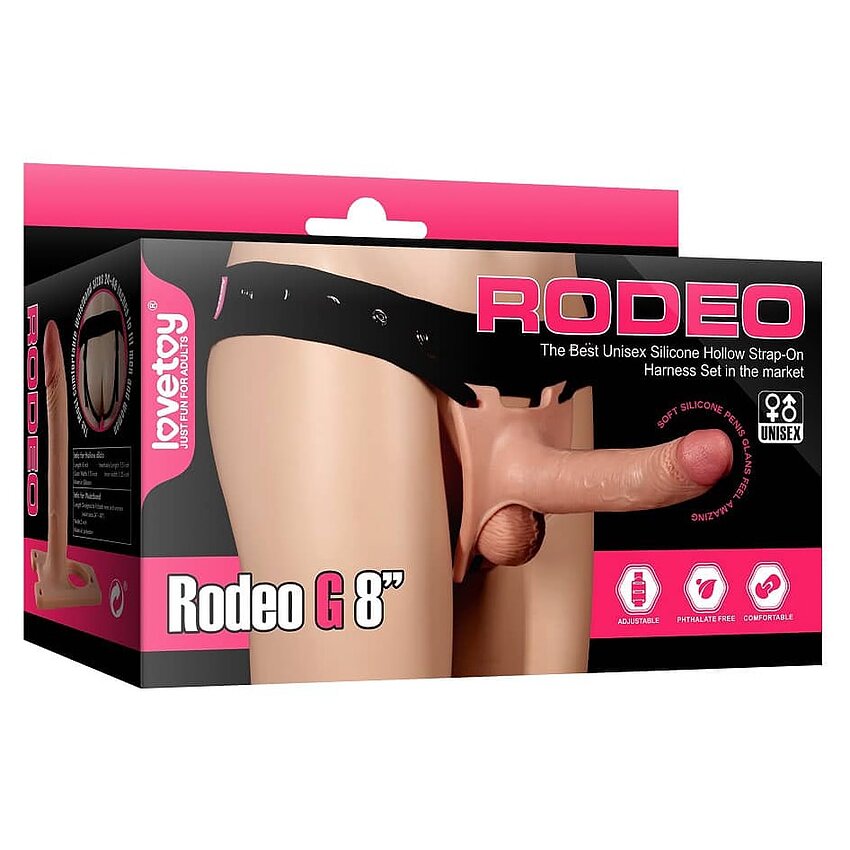 Rodeo G este un strap on conceput din silicon moale, conceput atât pentru cuplurile lesbi cât și pentru cuplurile heterosexuale care vor să încerce ceva nou. Are o lungime interioară de aproape 14 cm și un calibru de 4.5 cm (3.2 cm interior). Este de alură flesh și are un design ultra realistic. Poate fi întrebuințat și de femei, și de bărbați. Cureaua este ajustabilă și dildo-ul strapon-ului este extrem de confortabil.