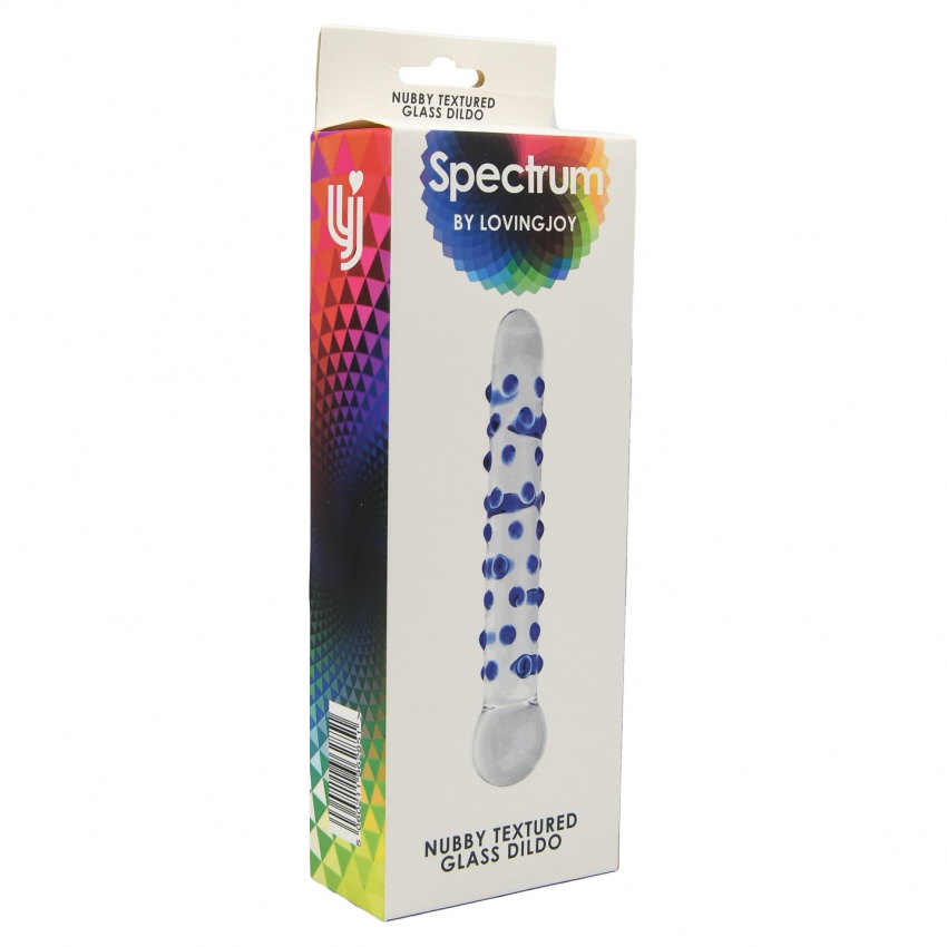 Penis artificial Joy Nubby cu Textură din sticlă Gamă Spectrum este conformă atât pentru utilizarea anală cât și pentru cea genitală. Hypoalergenic și igienic, ușor de curățat