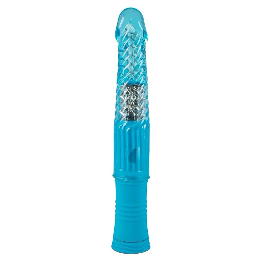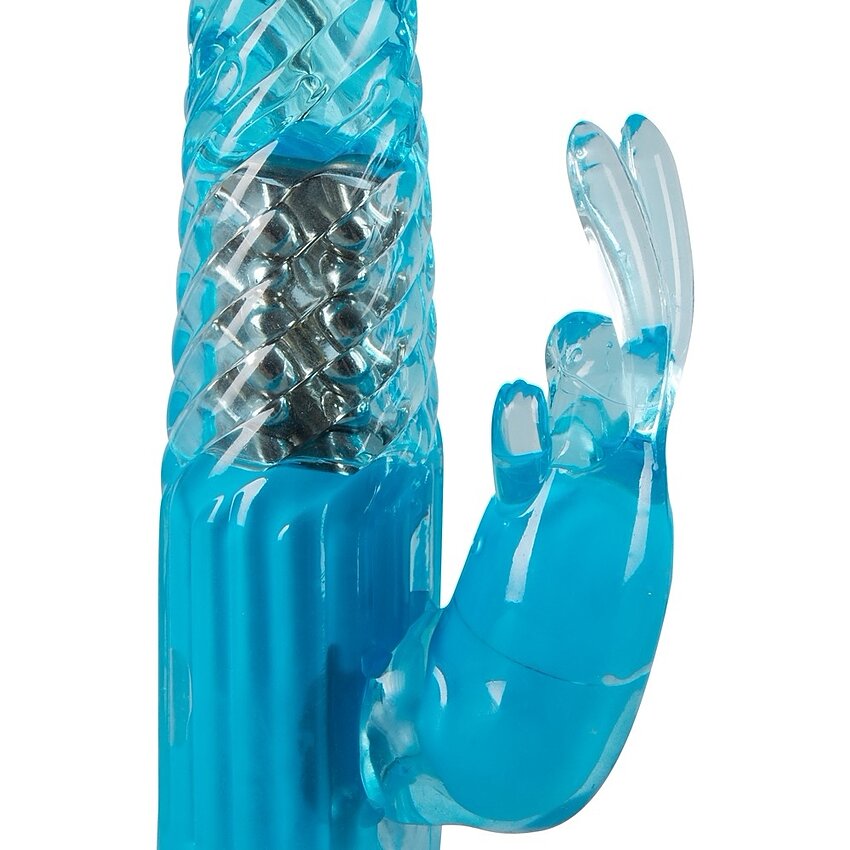 Vibrator iepuraș rotativ cu deget flexibil. Funcționează cu 4 nivele de rotație și opt niveluri de vibrații controlabile separat prin simpla apăsare a unui buton. Conține un stimulator pentru clitoris care va dărui stimulare suplimentară. Se recomandă utilizarea unei soluții de dezinfectare după utilizare. Vibrator Sugar Babe Albastru are nevoie de 4 baterii mărimea AAA care pot fi achizitionate odata cu produsul.
