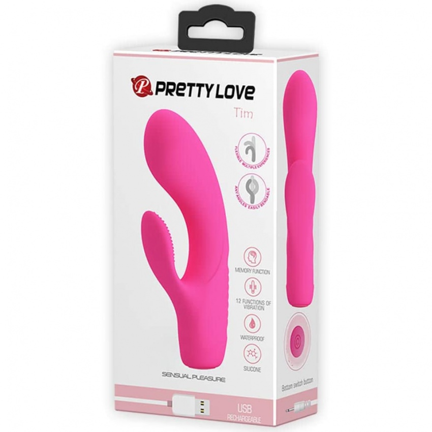 Pretty Love Tim Pink este un vibrator rabbit fabricat din silicon, are o mărime de 15.5 cm (10.5 cm inserabili) și un calibru de 3.5 cm. Are un stil performant, fiind ușor curbat, special conceput pentru stimularea intensă a punctului G.