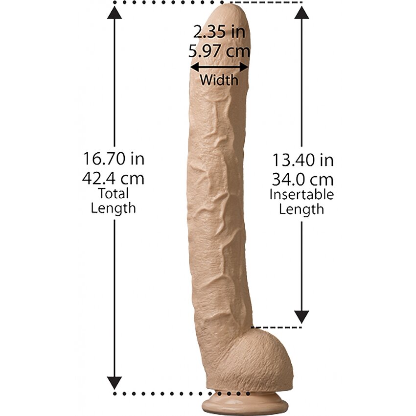 Lungime Totală: 42 cm Lungime Inserabilă: 30.4 cm Diametru: 5-6 cm Culoare: Natural Material: PVC Livrare: Confidențială Are Dimensiuni Generoase Are Ventuză Brand: Doc Johnson