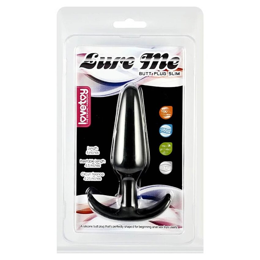 Lure Me Anal Plug Slim este un dop anal negru produs de Lovetoy lucrat din silicon. Are 13.2 cm lungime, 3.5 cm în calibru și o suprafață fină, favorizând inserția. Din pricina dimensiunilor sale, acest dop anal poate fi utilizat chiar și de începători.