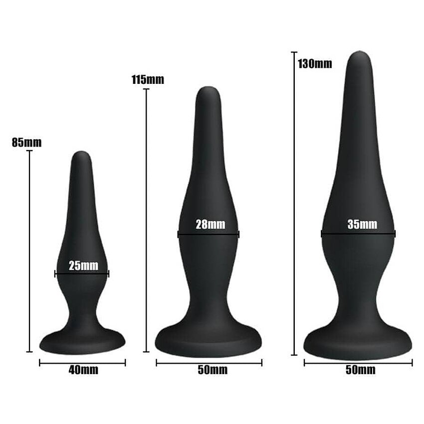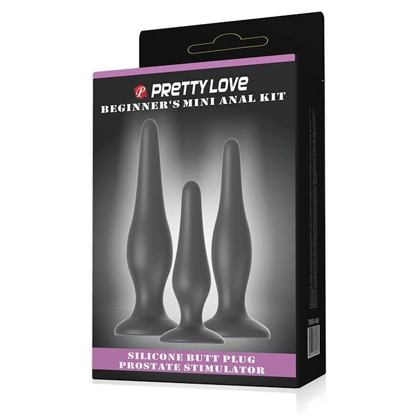 Acest Set Anal Plug Beginners Mini Anal Kit reprezintă 3 anal pluguri negre, de dimensiuni diferite, realizate din silicon. Au o suprafață foarte fină pentru o pătrundere anală delicată. Sunt prevăzute cu o ventuză cu vigoare mare de sucțiune, așadar pot fi lipite de absolut orice suprafață plană.