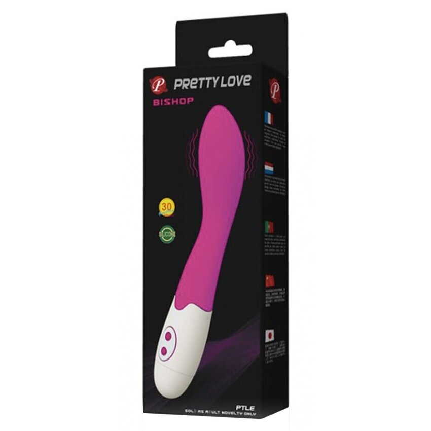 Vibratorul pentru punctul G Bishop Pretty Love este făcut din silicon și are 30 funcții de vibrație. Este tenace la apă și este ușor de spălat.