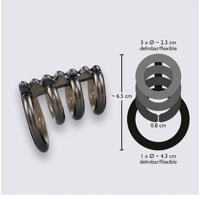Descoperă tăria erecțiilor impresionante și mai mult! Inelul de sex Bad Kitty Ring Quartett îți conferă 4 inele conectate, pentru senzații stimulante. Grosimea fiecărui inel este de 8 mm. Acționează acum și experimentează desfătarea intensificată și erecții tari cu acest inel penis inovator!