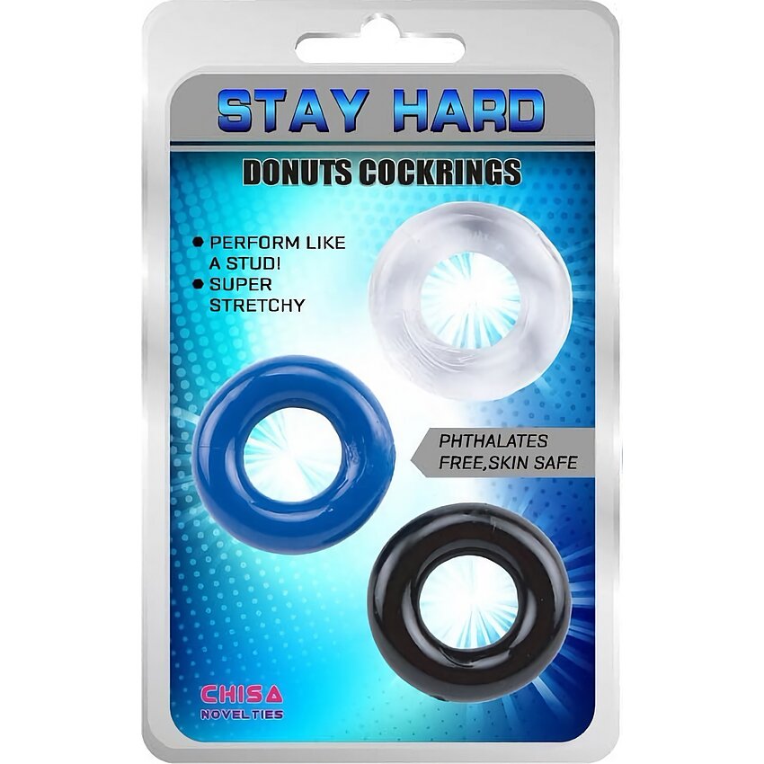 Setul de inele pentru penis Power Donut Rings Assorted 3 pack reprezintă 3 inele fabricate din silicon catifelat și flexibil, de culori diferite care pot fi puse în jurul penisului sau al scrotului. Blochează sau reduc debitul sanguin, crește impresiile și amână erecția. Nu conține ftalați și are 1.75 cm diametru, însă inelul este foarte flexibil.