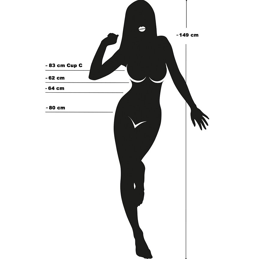 - Lungime completă: 149 cm - Adâncimea inserției genitale: 13 cm - Adâncimea inserției orale: 11.5 cm - Adâncimea inserției anale: 12.5 cm - Material: PVC