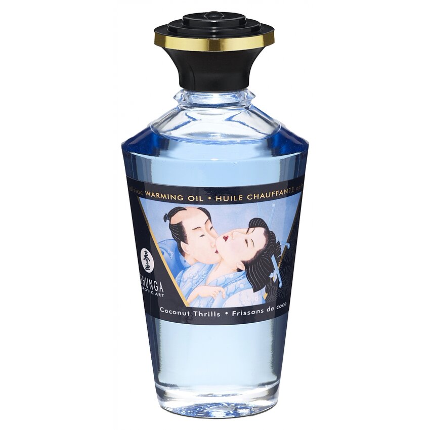 Uleiul de frecție Shunga Ulei Masaj Aphrodisiac Warming Oil Coconut 100ml fabricat 100% din ingrediente organice certificate, cu rezultat de încălzire activat de respirație, pentru o destindere profundă și un masaj senzual!