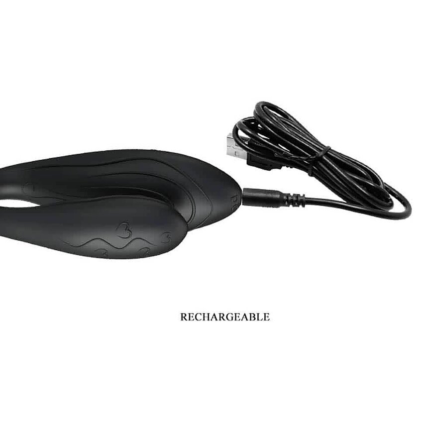 Vibratorul pentru cuplu Pretty Love Indulgence este confecționat din silicon și are 30 programe de vibrație care sunt controlate prin telecomandă wireless.