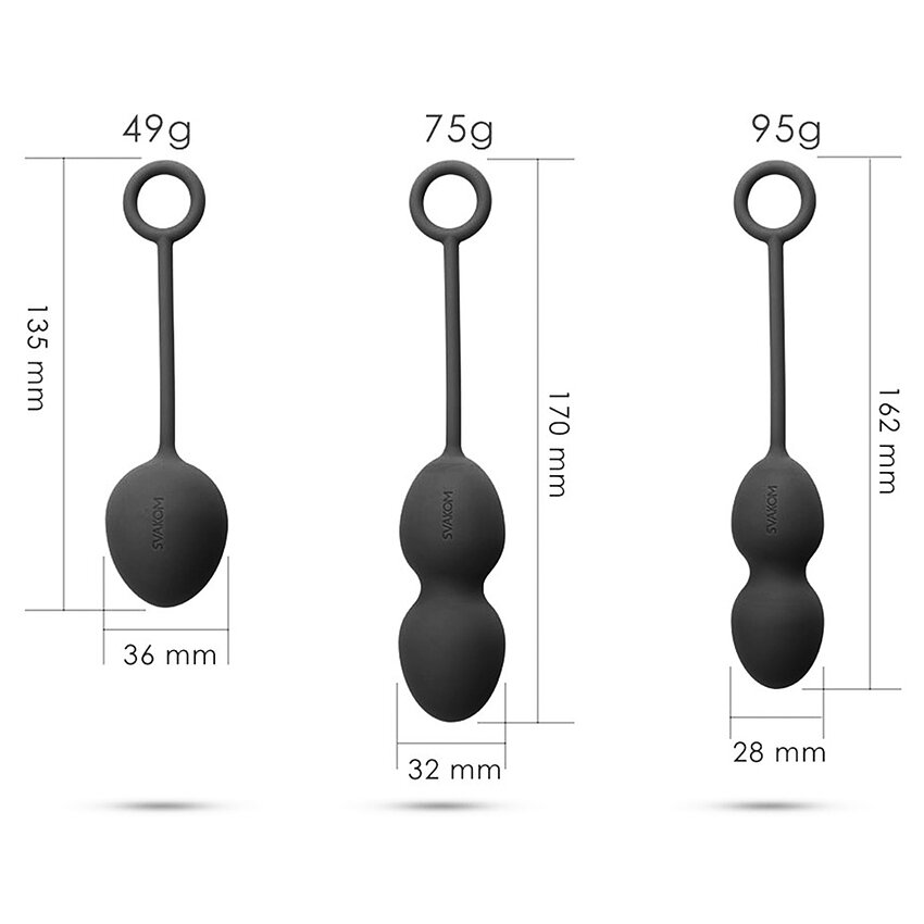 Acest set de bile kegel Nova Exercisers Svakom sunt confecționate din silicon și sunt 100% rezistente la apă. Acest set este dedicat în particular prietenelor care au născut și vor să își tonifieze și restructureze mușchii genitali, însă nu numai.