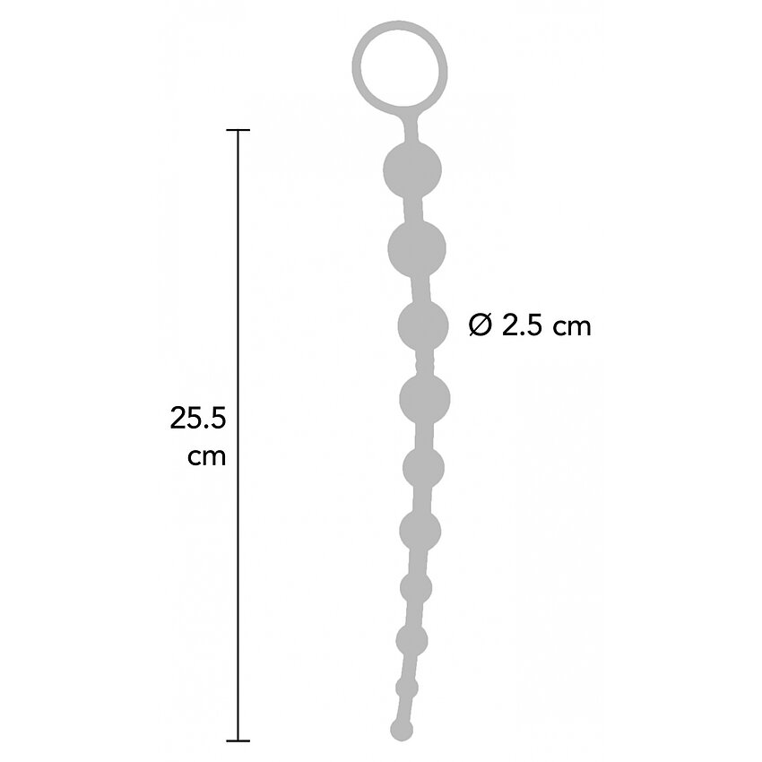Șirag de bile anale cu formă specială - biluțele sunt destul de mici la vârf, pentru o introducere ușoară, plăcută și se măresc gradual. La bază, sunt prevăzute cu un inel, ce oferă un control perfect în timpul stimulării anale și contribuie la evitarea accidentelor neplăcute.