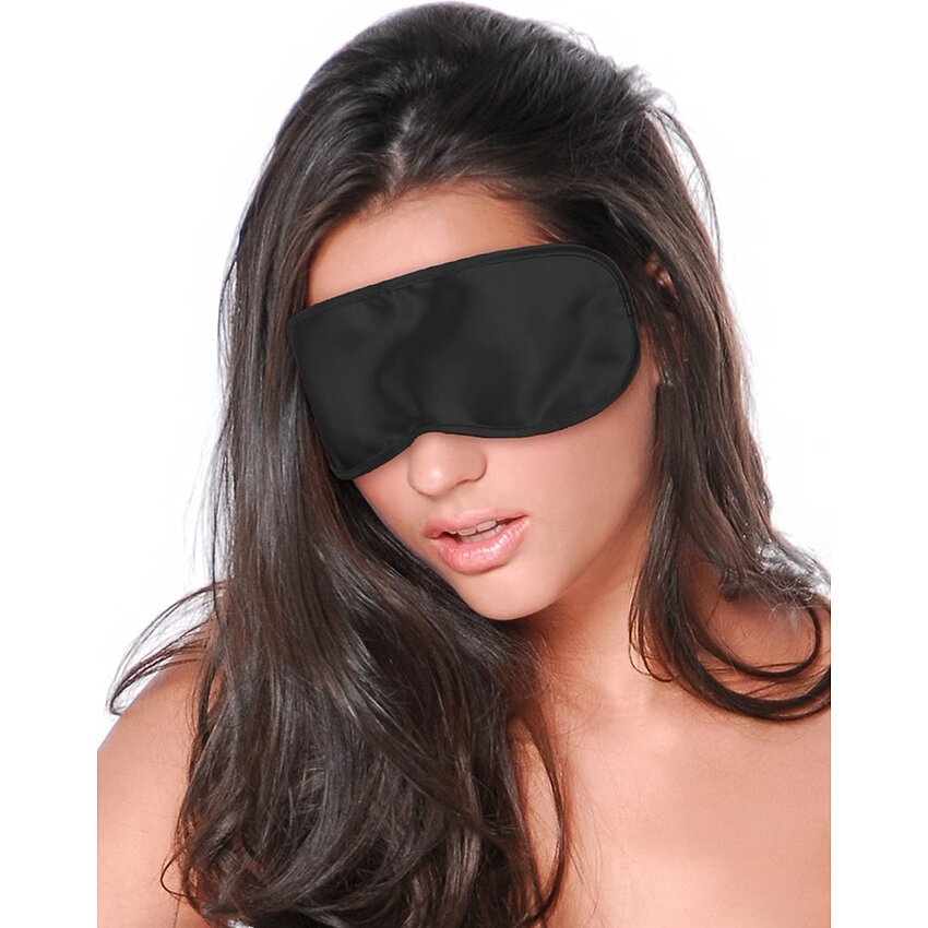 Mască neagră din satin, perfectă pentru ambii parteneri în jocurile sexuale din dormitor.