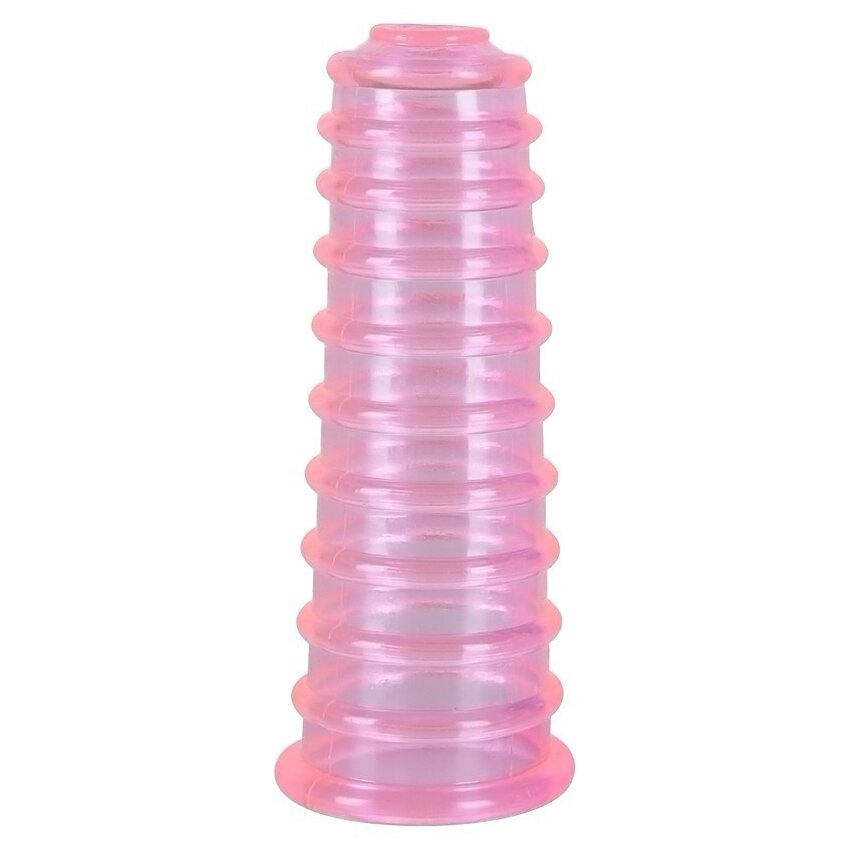 Setul conține 2 manșoane: unul mov translucid cu cilii înfierbântători și unul roz translucid cu denivelări pentru o stârnire plăcută.