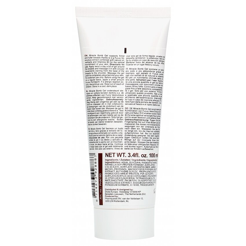 Gelul Miraculos Pentru Sâni susține la creșterea sânilor susținându-i mai fermi datorită, de exemplu, extract Fucus veziculos combinat cu ulei natural, extracte și Vitamina B3 pentru o hrănire optimă a pielii tale.