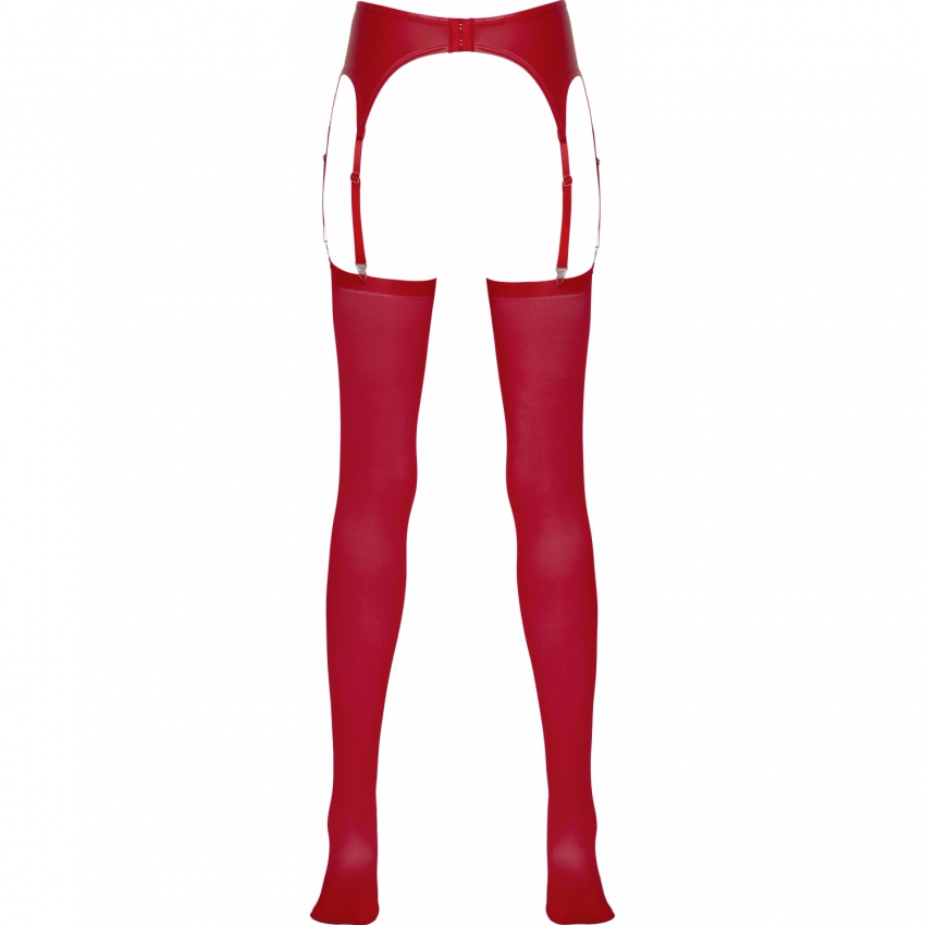Roșu aprins! Un port jartier clasic realizată dintr-un material elegant cu aspect mat. Cu piese metalice de tentă argintie și 3 bande de suspensie pe parte. Ciorapii roșii potriviți sunt incluși. Un adevărat must-have pentru seducătoare. Poate fi purtat cu diverse ținute. Cu bretele reglabile.