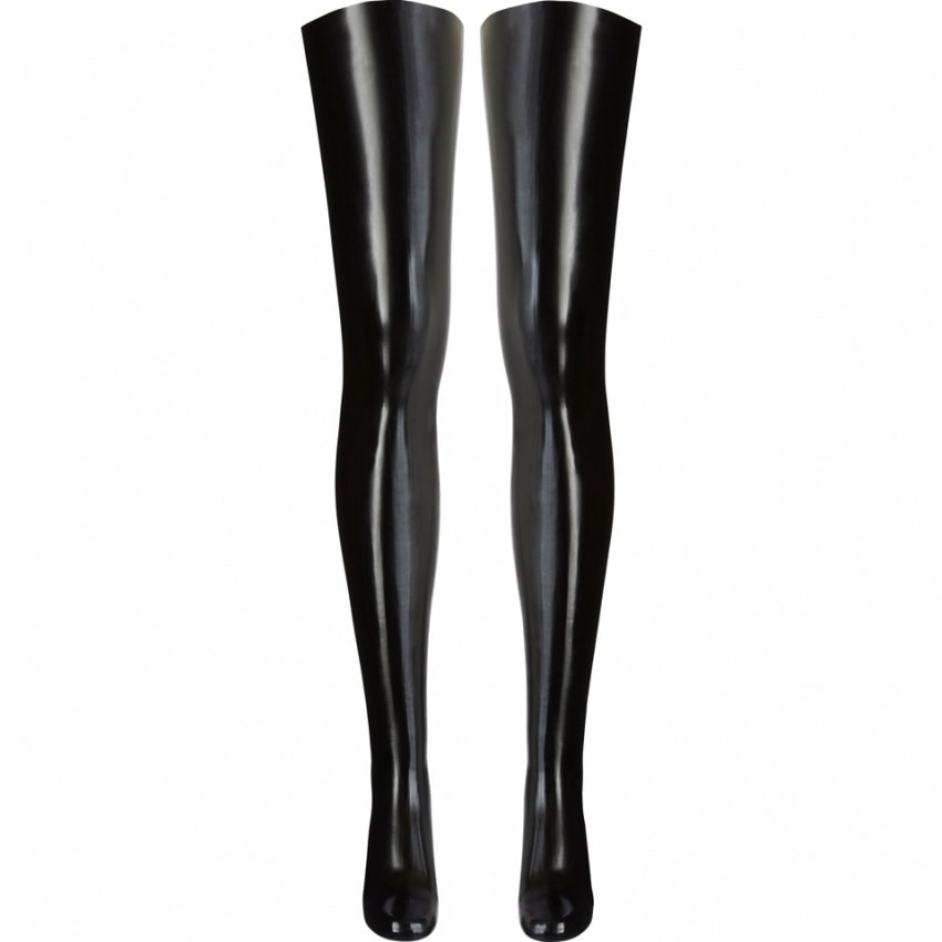 Ciorapi din latex negru, ce se conturează perfect pe piciorul dvs. Material 100% latex (cauciuc natural).
