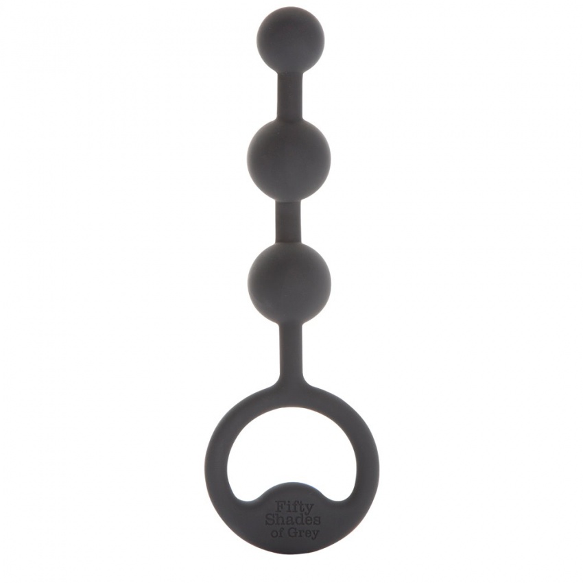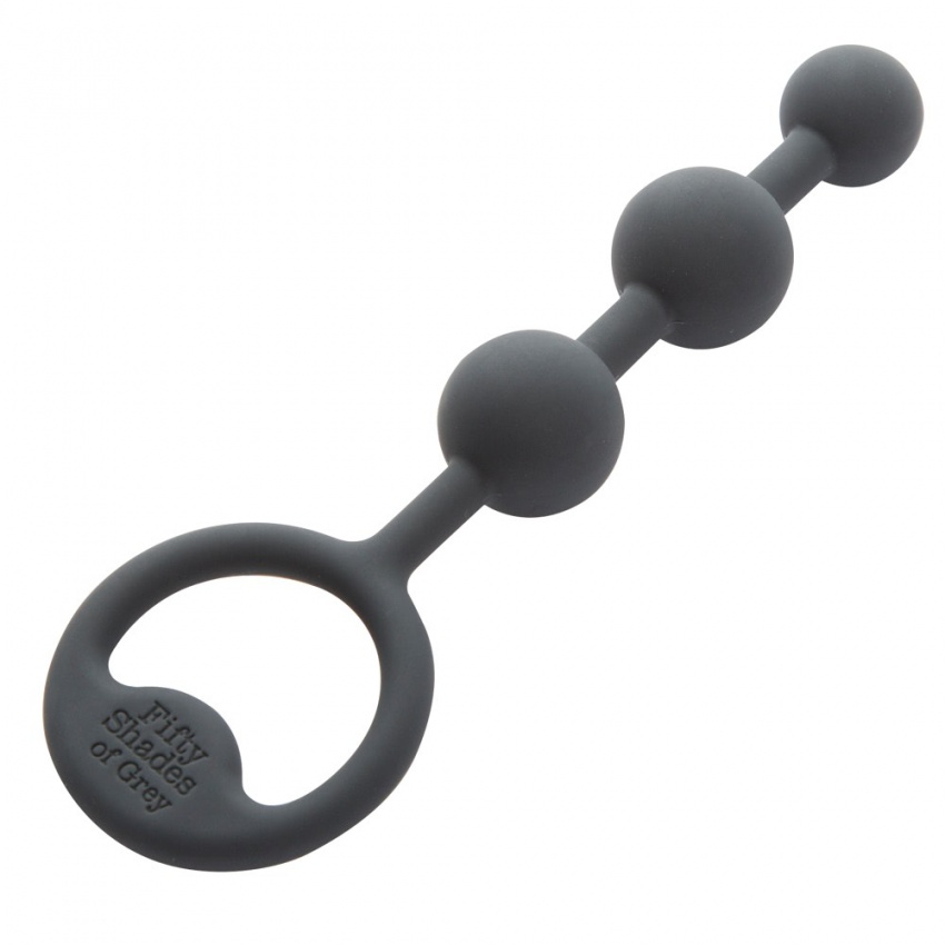 Bile Anale din colecția Fifty Shades Of Grey din material silicon fin. Un șirag de 3 bile mărimi diferite având la punct final un inel pentru ușurință în utilizare. Extindere 10cm diametru bine cca.2cm.