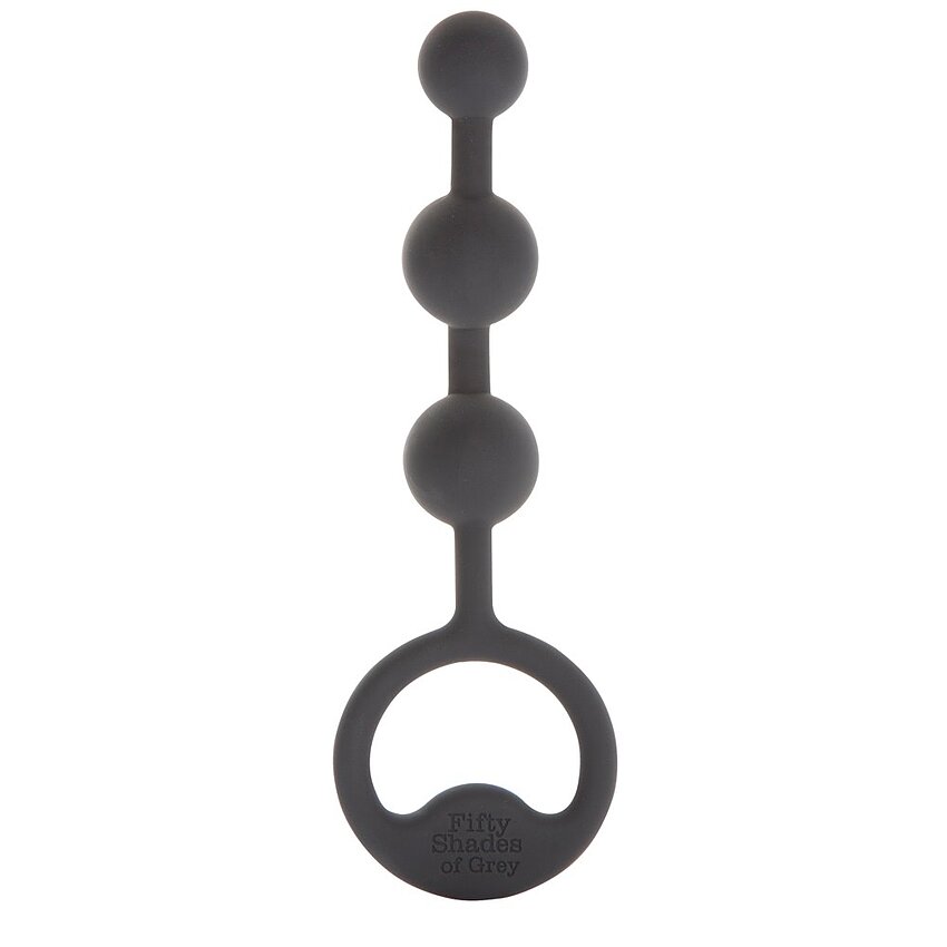 Bile Anale din colecția Fifty Shades Of Grey din material silicon fin. Un șirag de 3 bile mărimi diverse având la capăt un inel pentru ușurință în utilizare. Lungime 10cm calibru bine cca.2cm.