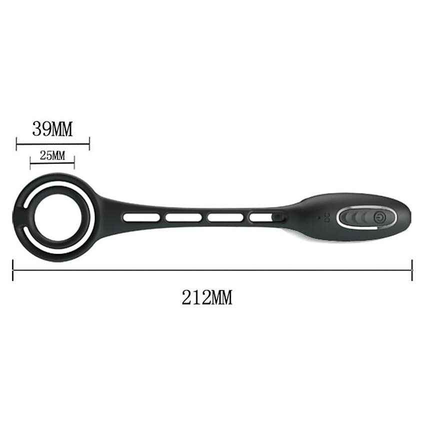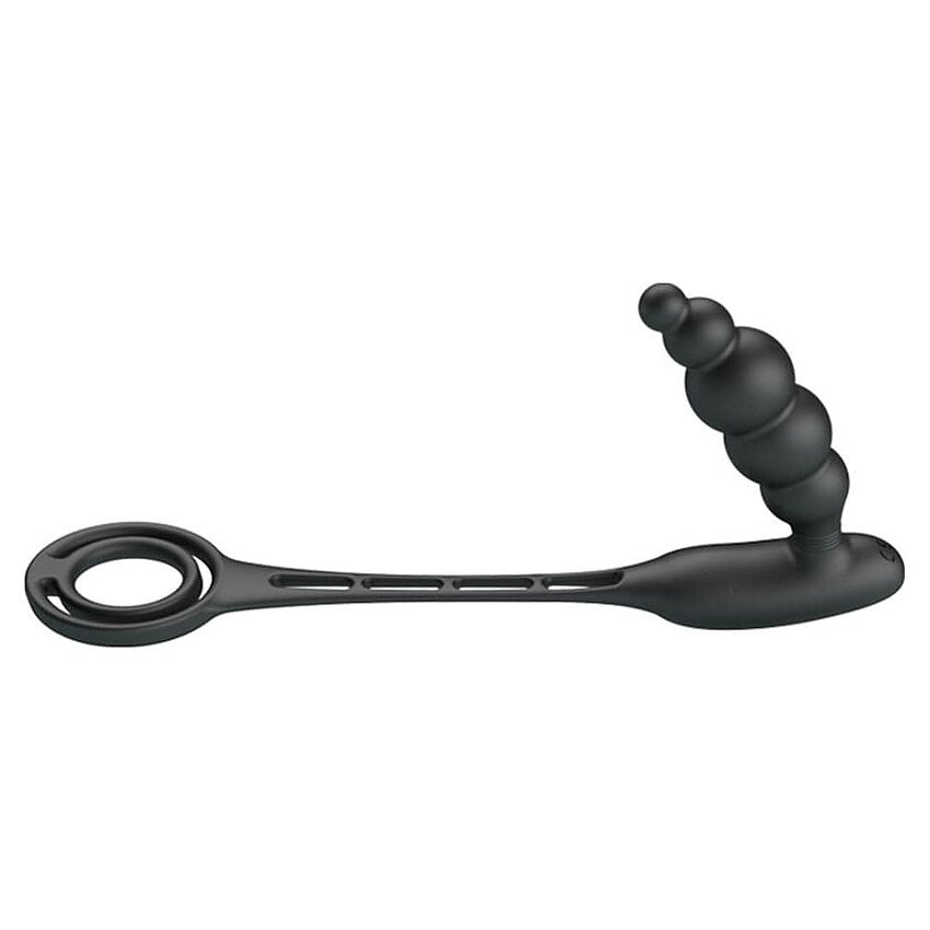 Pretty Love Vibration Penis Manșon III este un inel pentru penis legat cu un șnur din silicon de un anal plug.
