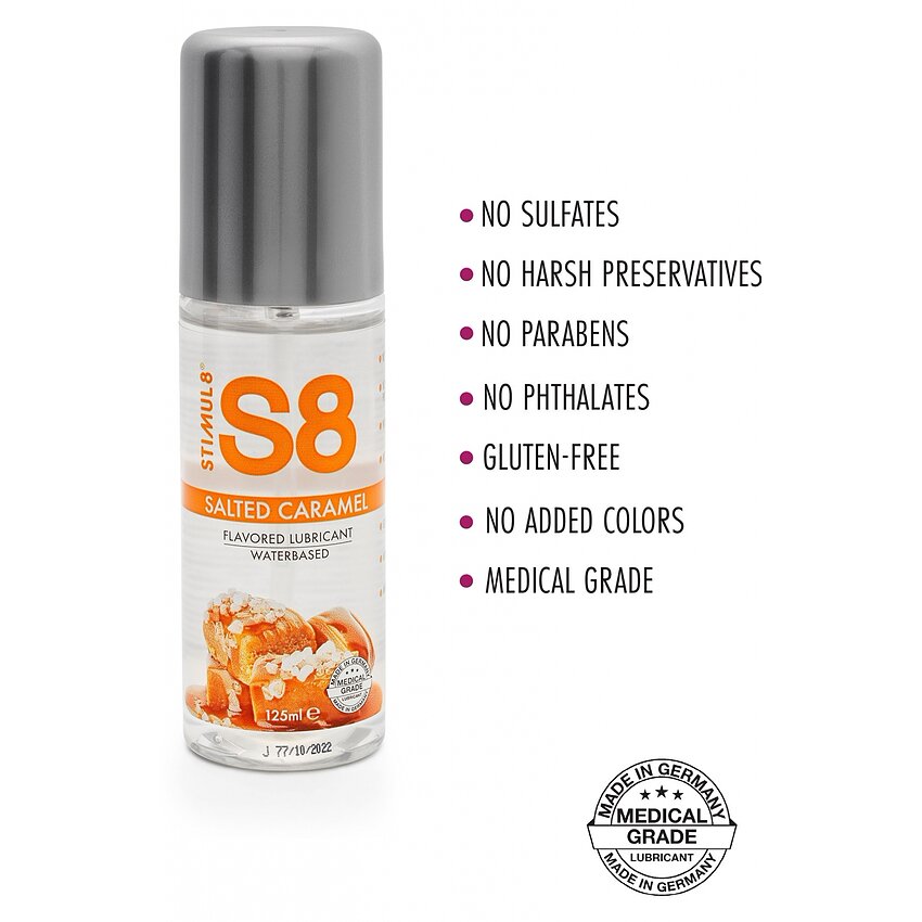 Lubrifiantul premium Waterbase Flavored de la S8 este o alegere delicioasă pentru consumatorii care doresc o alunecare senzațională și o aromă indulgentă, tratându-și punctele fierbinți și papilele gustative cu o stârnire senzuală. Această soluție netedă și de lungă durată de la S8 este complet fără parabeni, lipsit de ftalați, minus gluten, fără sulfat, plus nu conține culori adăugate sau conservanți duri pentru un apel irezistibil natural. Cu aprobarea de excepție medicală, lubrifiantul aromatizat S8 Waterbase aderă, de asemenea, la toate reglementările actuale ale UE privind produsele de igienă sexuală și face o alternativă de încredere, la preț competitiv și transparență la alte opțiuni neaprobate de pe piață.