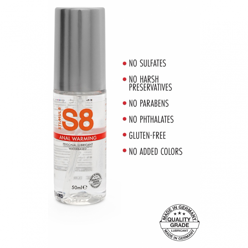 Lubrifiantul anal premium cu rod de încălzire de la S8 oferă o glidare ușoară, de lungă durată, angelic pentru aventuri obraznice. Această formulă fantastică și de întinsă perioadă de la S8 este complet excluzând parabeni, lipsit de ftalat, minus gluten, fără sulfat, plus nu conține culori adăugate sau conservanți duri pentru un apel irezistibil natural. Când este aplicat, lubrifiantul pentru încălzire anală S8 Waterbase are un concluzie de încălzire grațios asupra pielii, adăugând o notă plăcută de pasiune fierbinte chiar acolo unde doriți!