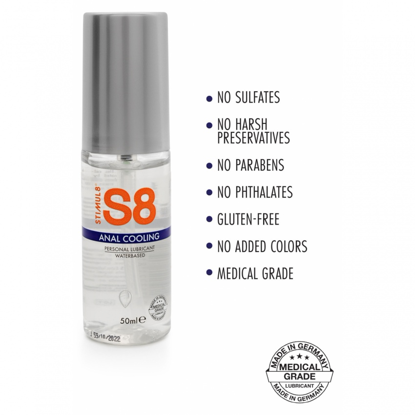 Lubrifiantul de lux S8 Waterbase Anal Cooling transmite o glidare ușoară, de lungă durată, perfect pentru aventuri obraznice! Această rețetă uimitoare, de lungă durată de la S8 este complet minus parabeni, fără ftalat, fără gluten, fără sulfat, plus nu este format din nuanțe adăugate sau conservanți duri pentru un apel irezistibil natural. Când este aplicat, lubrifiantul de răcire anală S8 Waterbase are un rezultat de răcire grațios asupra pielii, adăugând o senzație de furnicături plăcută chiar acolo unde doriți!