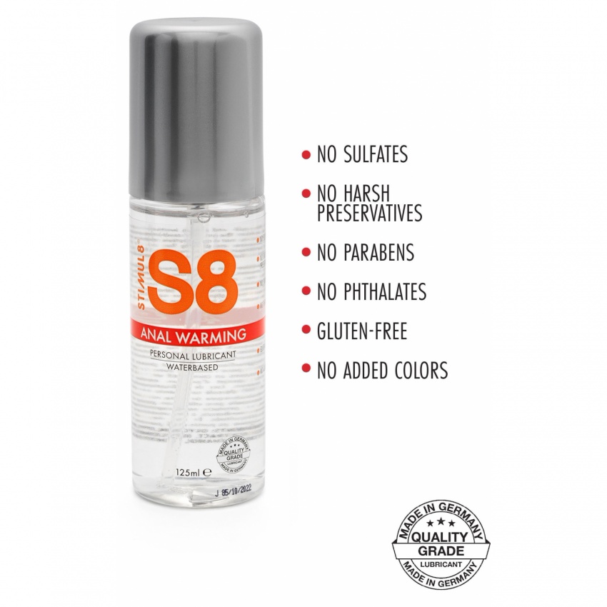 Lubrifiantul cu efect de încălzire anal S8 premium oferă o glidare indulgentă, de lungă durată, excelent pentru aventuri obraznice! Această formulă fantastică și de lungă durată de la S8 este complet fără parabeni, fără ftalat, lipsit de gluten, fără sulfat, plus nu este alcătuit din colorații adăugate sau conservanți duri pentru un apel irezistibil natural. Când este aplicat, lubrifiantul pentru încălzire anală S8 are un concluzie de încălzire gingaș asupra pielii, adăugând o notă desfătătoare de pasiune fierbinte chiar acolo unde doriți!