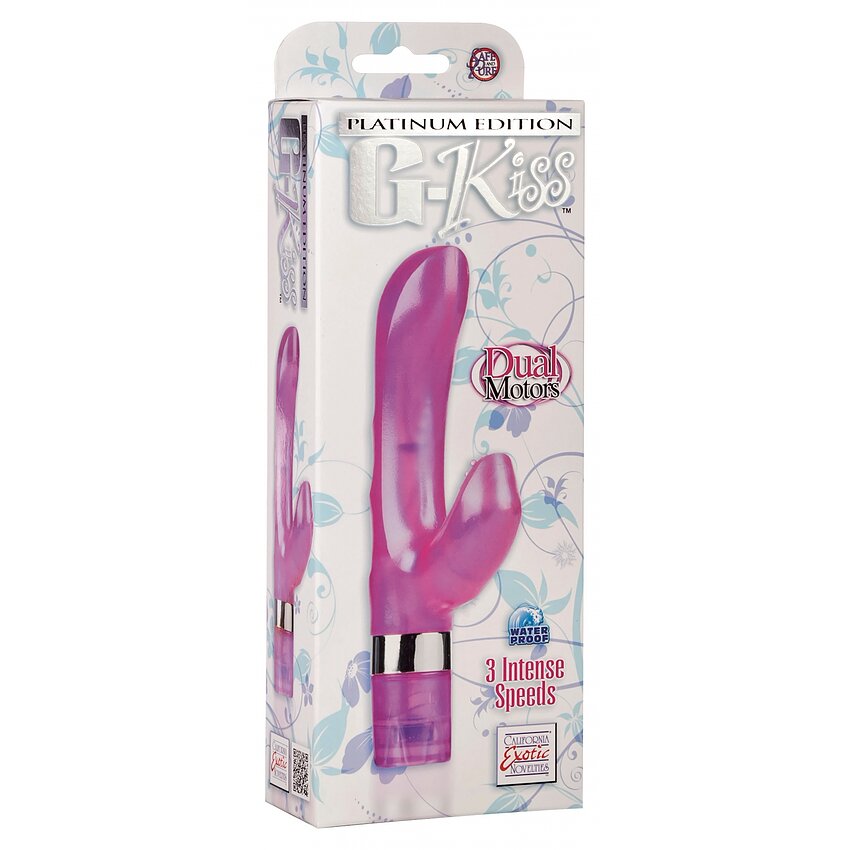 Vibratorul G-Kiss conturat și compact este creat pentru a oferi plăcere intimă maximă. Stimulatorul combinat se mândrește cu două motoare, 3 viteze intense de vibrație, un vârf curbat pentru punctul G și un teaser pentru clitoris. Este făcut dintr-un material foarte jelly și flexibil. Vibe-ul are un arbore profilat cu creste de plăcere, un vârf larg, unghiular pentru punctul G și un teaser curbat pentru clitoris, cu noduri flexibile, pentru o stimulare intensă. Motoarele duale alimentează 3 viteze ascendente puternice care sunt controlate cu ușurință prin intermediul capacului de la bază. Pentru a vă maximiza experiența de furnicături, utilizați întotdeauna un lubrifiant de excepție cu această jucărie. Stimulatorul este impermeabil și poate fi folosit pentru a masa și a încânta toate zonele receptive ale corpului, în interiorul sau în afara apei. Stimulatorul combinat este ideal pentru utilizatorii începători sau pentru exploratorii cu experiență cărora le place să se delecteze cu jocurile sexuale solo.