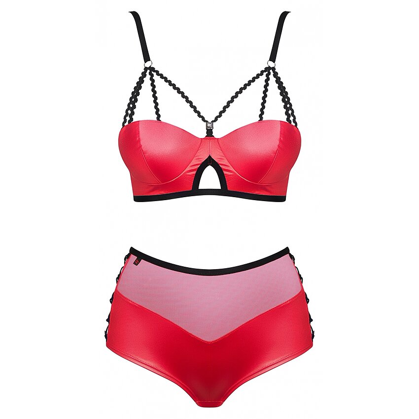 Set Obsessive Leatheria Roșu este o piesă de lenjerie admirabilă și exagerat de atrăgătoare, inventată și realizată de distinsul brand de lenjerie Obsessive din Polonia.