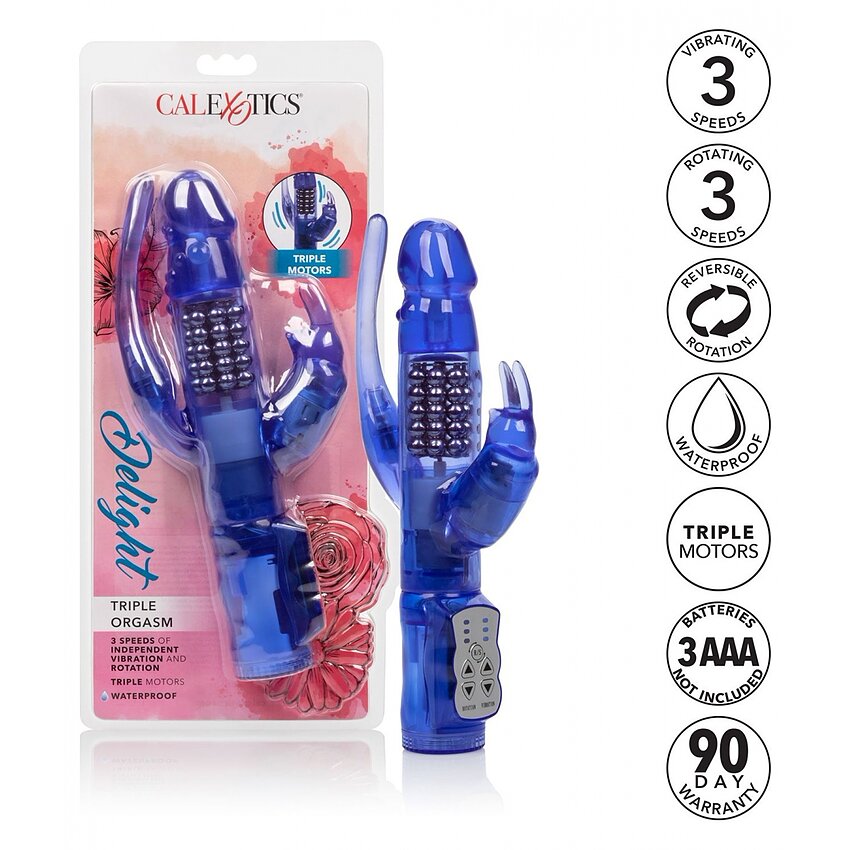 Pentru cei mai îndrăzneți căutători de plăcere, vibratorul Delight Triple Orgasm a fost creat pentru a dărui stimulare palpitantă din absolut orice unghi doriți. Vibratorul puternic are 3 motoare puternice de vibrații pentru a trimite stârnire și furnicături în tot corpul, teaserul în formă de iepure stimulează clitorisul prin gâdilare.