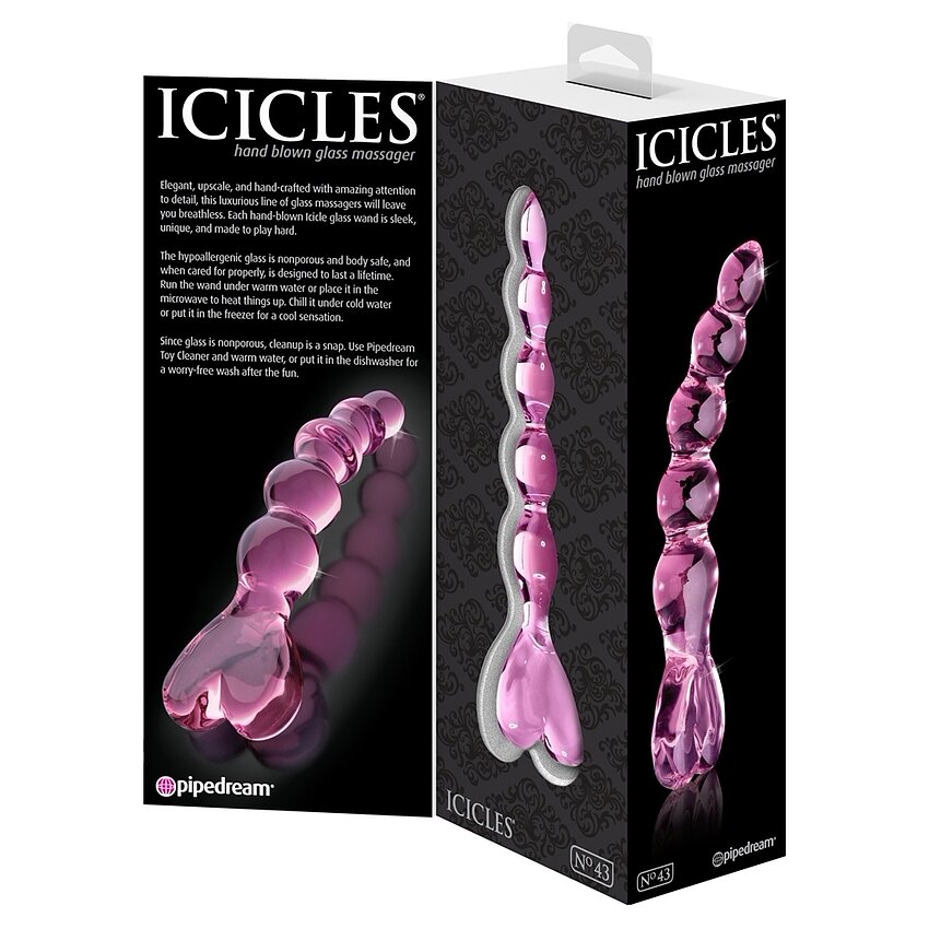 Dildo din geam care exprimă eleganță și lux, realizat manual, cu o atenție uimitoare la detalii. Fiecare penis artificial din sticlă Icicles realizat manual este elegant, unic. Conține de un vârf conic pentru a ușura inserția și un ansamblu de prindere în siluetă de inimă pentru o manipulare sigură și ușoară, acest arbore cu mărgele oferă o stimulare reproducătoare sau anală supremă.