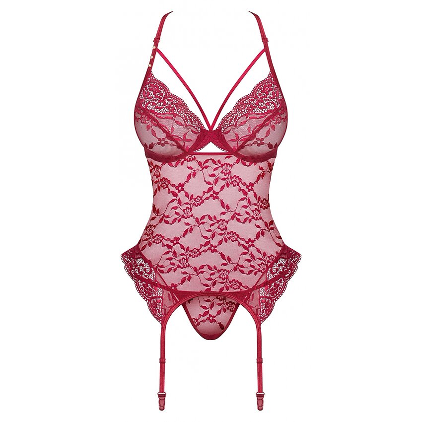 Corset Obsessive Ivetta Roșu este un articol de lenjerie uimitoare și exagerat de tentantă, inventată și confecționată de ilustrul brand de lenjerie Obsessive din Polonia.