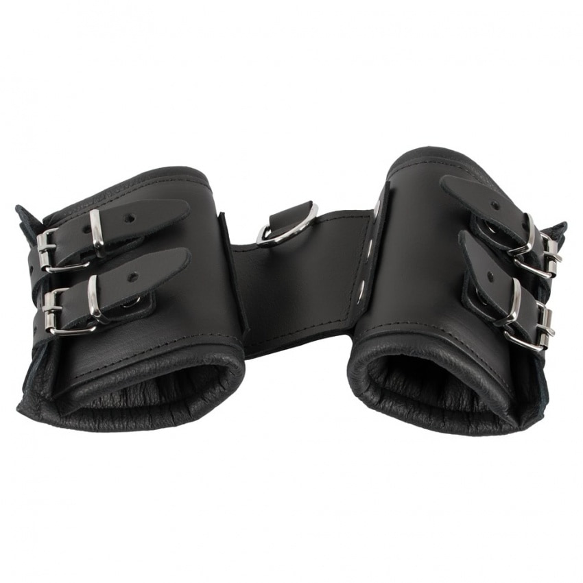 Faceți-vă ședințele de robie emoționante cu aceste cătușe tari din piele. Manșetele sunt de înaltă calitate și, prin urmare, sunt extraordinar de durabile. Cele două manșete sunt prevăzute cu două catarame care încuviințează o ajustare ușoară. Secțiunea mijlocie are un inel D în partea superioară la care puteți atașa podoabe de legătură, cum ar fi manșete cu lanț sau glezna, dacă doriți.